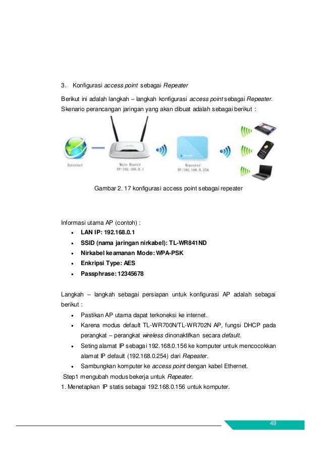 Jadi terdapat 2 pc atau lebih dengan perangkat wifi yang dapat langsung berhubungan tanpa adanya alat yang disebut dengan access point mode. Untuk dapat mengembangkan suatu mode wlan, setidak nya di perlukan empat komponen utama yang harus di sediakan, antara lain : Sistem keamanan sistem keamanan ini sangatlah penting di dalam sebuah jaringan wlan. Setiap pc yang ada pada jaringan wireless dilengkapi dengan sebuah radio tranceiver, atau yang biasanya disebut dengan adapter atau wireless card yang akan mengirimkan serta menerima geombang radio ke serta dari pc yang lain, namun yang masih berada dalam satu jaringan. Aug 21, 2017 · 8. 1.5 manfaat penelitian adapun kegunaan dari penelitian ini terbagi menjadi 2 bagian yaitu kegunaan praktis dan kegunaan akademis. Radio merupakan media transmisi nirkabel yang digunakan untuk mengkomunikasikan informasi melalui sinyal radio di udara. Perangkat interkoneksi jaringan ada 5 jenis yaitu. Dan disebut juga dengan wireless lan adaptor usb. See full list on teks.co.id Wireless lan interface alat ini biasanya adalah merupakan suatu alat tambahan yang dipasangkan pada pc atau laptop. Meskipun dapat di jadikan sebagai investasi untuk jangka yang panjang, namun akan jauh lebih bijak apabila hanya untuk menghubungkan beberapa pc atau laptop yang menggunakan media komunikasi add hock ( peer to peer ) 2. Mode koneksi dari adhoc ini merupakan mode yangmana beberapa pc terhubung secara langsung atau yang lebih dikenal dengan istilah " peer to peer ".